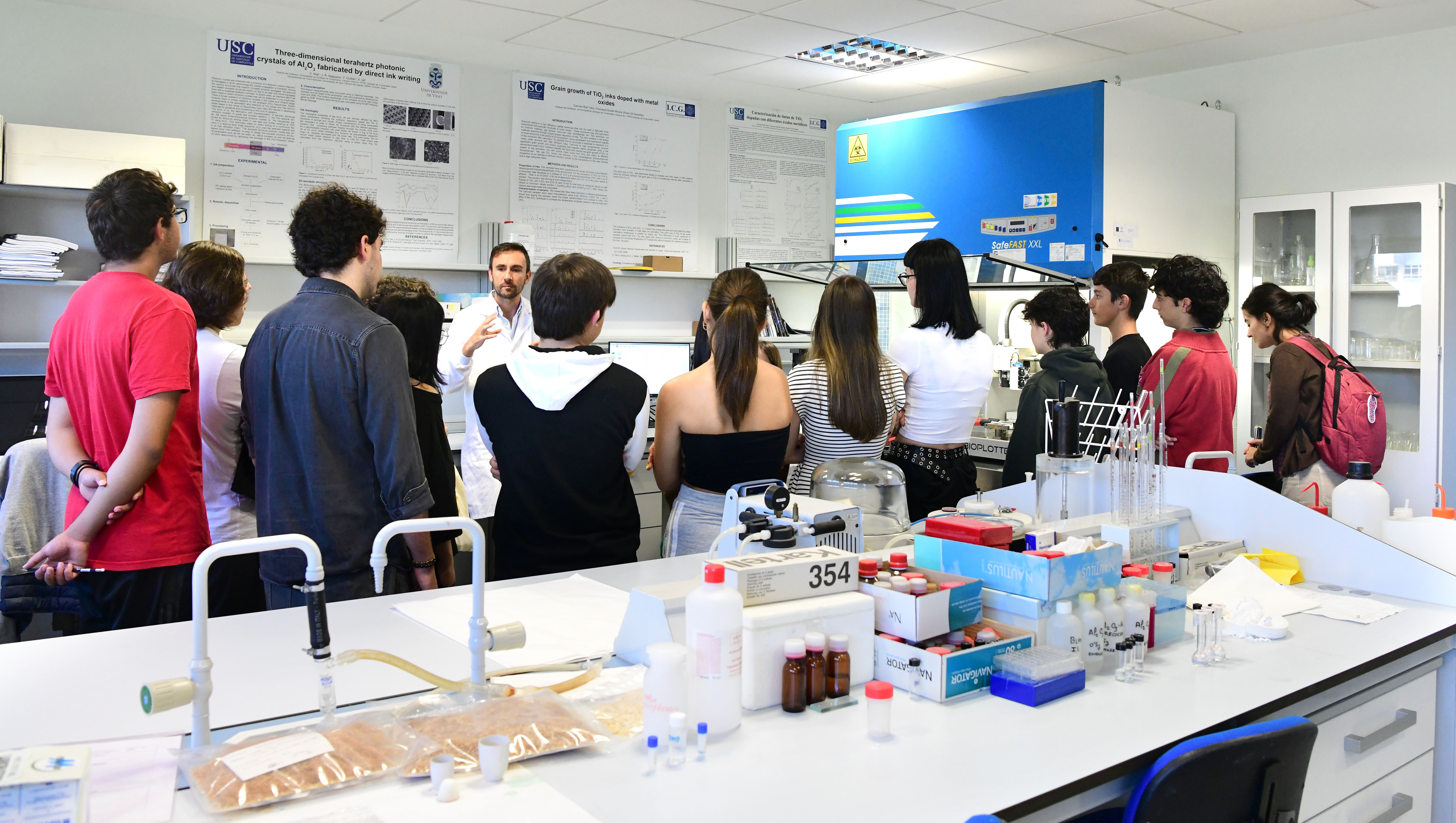 O Instituto de Materiais da USC (iMATUS) recibiu este mércores 4 unha vintena de estudantes de Bacharelato de Ciencias que cursan Tecnoloxía no IES de Sar. “O estudantado tivo a oportunidade de coñecer de primeira man as metodoloxías de deseño e procesado de novos materiais 2D e 3D más innovadoras”, explicou a directora do iMATUS, Carmen Álvarez Lorenzo. Esta visita de alumnado preuniversitario enmárcase no programa ‘Colabora e Innova no teu Barrio’ da Estratexia de Desenvolvemento Urbano Sostible e Integrado (EDUSI) Revive Santiago, que durante os próximos meses achegará a cidadanía compostelá á innovación, á fabricación dixital e á dixitalización.