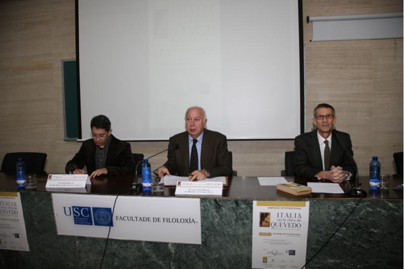 Pese a ser coñecida a influencia que tivo a Italia do Renacemento na configuración intelectual e literaria de Quevedo, a ciencia non dedicou demasiado tempo en estudalo en profundidade. Por esta razón, este xoves e venres a Facultade de Filoloxía reúne nun simposio a persoal investigador de España e Italia para que dende múltiples perspectivas profunden nas correntes ideolóxicas, xéneros literarios, autores italianos e prácticas editoriais que condicionaron a obra quevediana. O encontro inaugurouse nun acto que contou coa presenza do reitor Juan Casares, o decano Ernesto González, e o profesor Alfonso Rey en representación do comité organizador. Os especialistas que participan no simposio internacional ‘Italia na obra de Quevedo’, todos eles expertos en Literatura española do Século de Ouro, intercambiarán pareceres nos ámbitos histórico -en torno á tradicional vinculación de Castela e Nápoles-, biográfico relacionado coa estancia de Quevedo en Italia ao servizo do duque de Osuna e a Corte de Madrid, e especialmente literario, atentos ao pensamento neoaristotélico, o petrarquismo ou o neoplatonismo, que deixaron pegada en textos políticos, amorosos ou burlescos. De forma paralela a esta liña central do encontro, algúns relatorios tratarán asuntos non estritamente relacionados co poso italiano en Quevedo, pero de grande interese para definir mellor os perfís da súa figura no contexto cultural do seu tempo. Promovido polo grupo de investigación Francisco de Quevedo da USC e coordinado polo profesor Alfonso Rey Álvarez e a profesora María José Alonso Veloso, o encontro conta coa colaboración do Servizo de Publicacións, varias universidades italianas e a ‘Fundación Francisco de Quevedo.