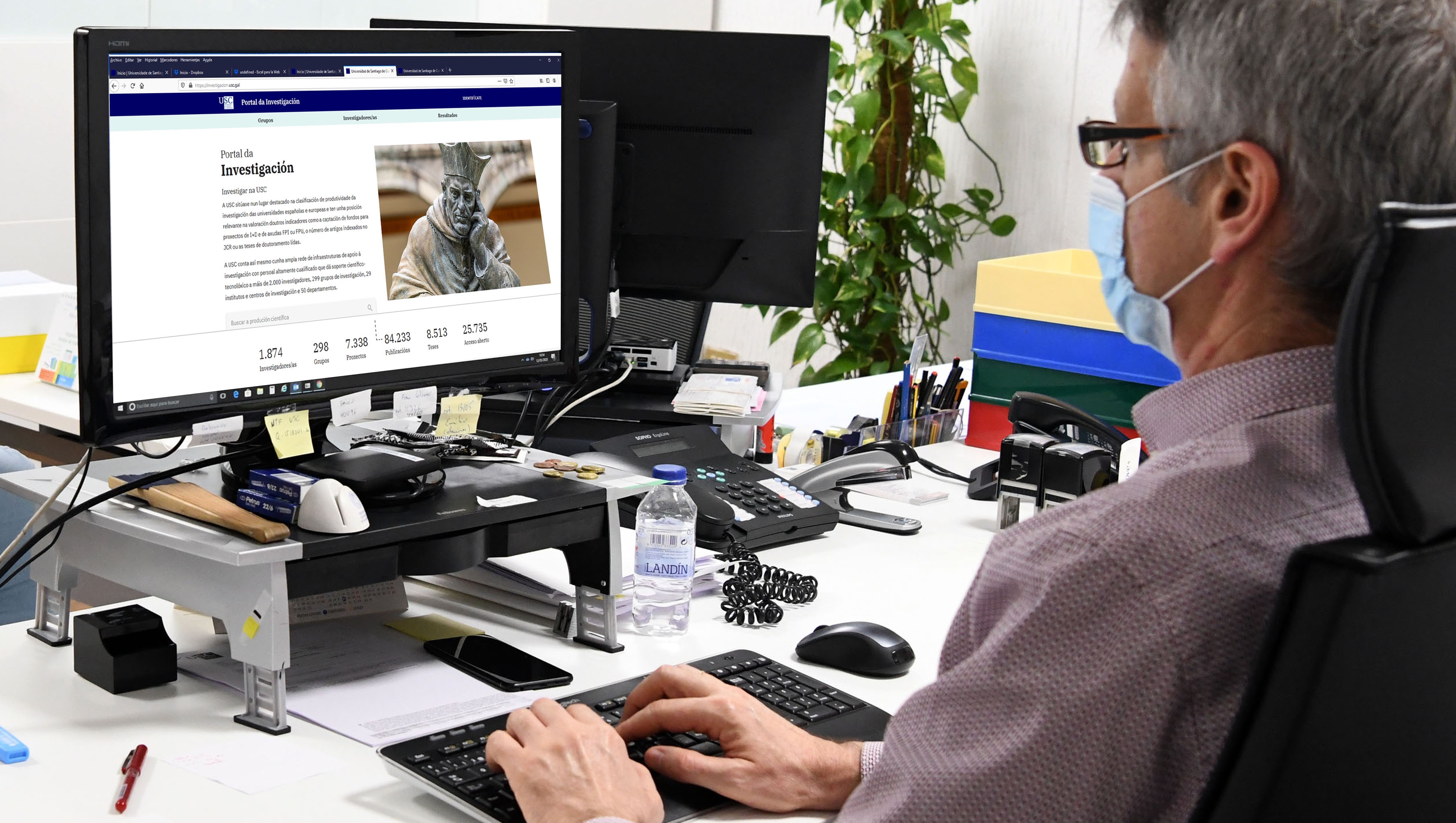 O Portal da Investigación da USC acaba de ver a luz co obxectivo de difundir, dar visibilidade e transferir á sociedade os resultados das actividades de investigación da Universidade. Este novo espazo facilita o acceso ás publicacións e datos de investigación, contribuíndo aos obxectivos da ciencia aberta. Ademais, establece unha relación entre o financiamento e os seus resultados, realizando un exercicio de transparencia ao tempo que mellora a visibilidade e o impacto da institución. Nesta fase inicial de posta en marcha, só se pode acceder ao Portal dende as redes da USC.