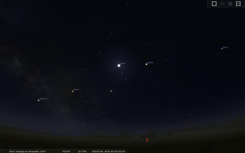 Con respecto aos fenómenos que se poderán observar, dende o Observatorio Astronómico Ramón María Aller da USC destacan unha curiosa aliñación nos amenceres de febreiro e marzo dos planetas Saturno, Marte e Xúpiter coas brillantes estrelas Antares e Spica. Entre os días 5 e 11 deses dous meses a lúa irá percorrendo esa aliñación.