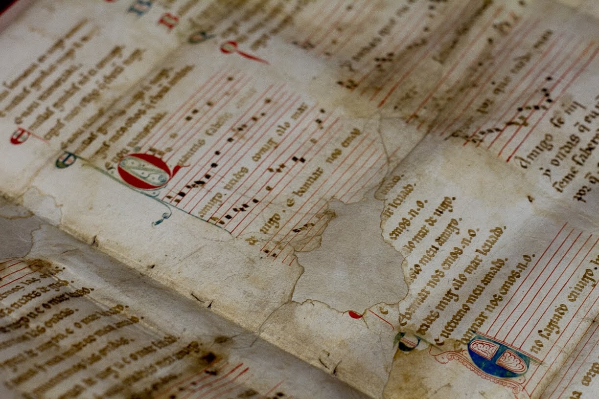 Detalle da mostra 'Pergamiño Vindel. Un tesouro en sete cantigas'. FOTO: Xunta