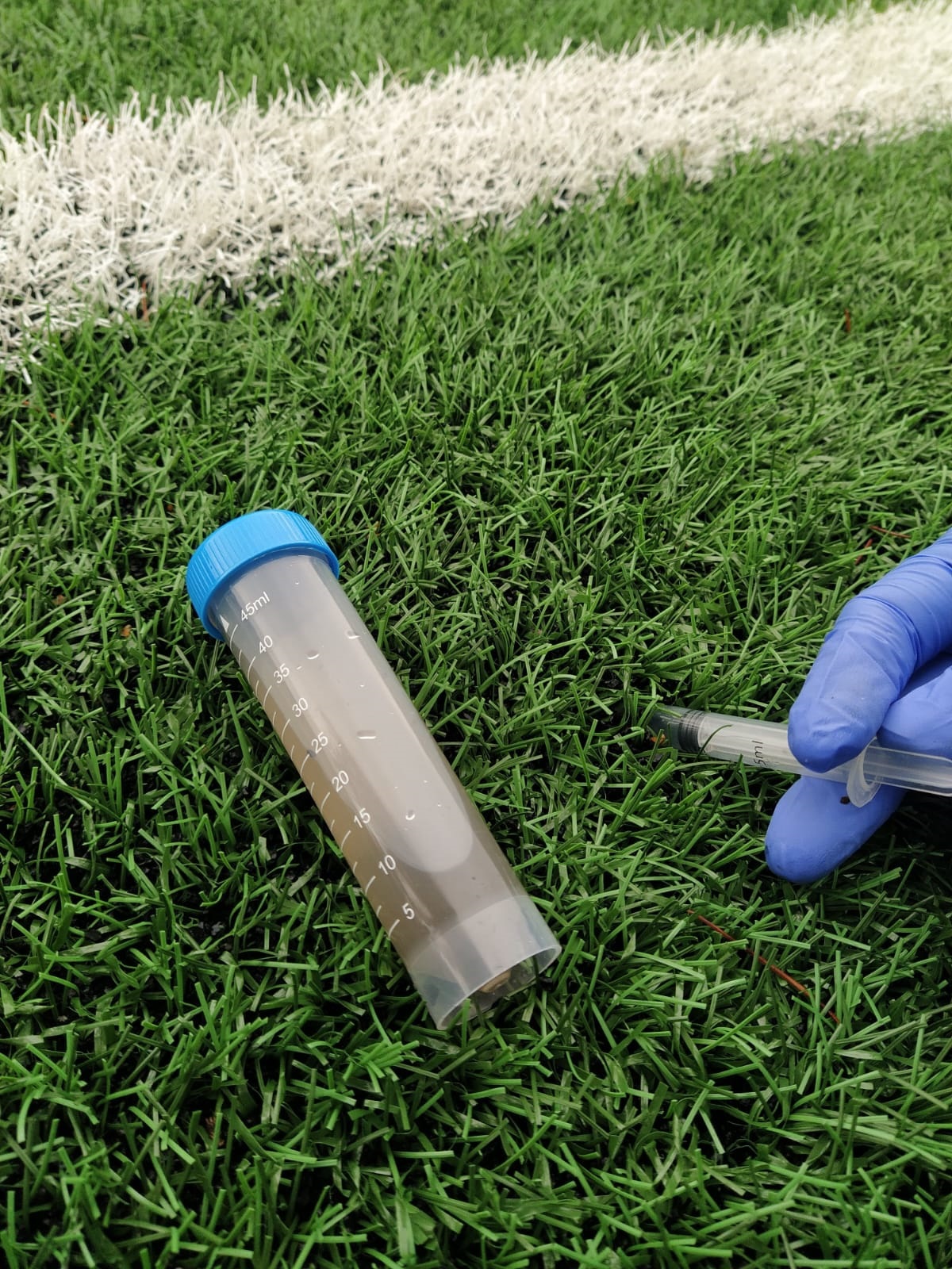 O estudo tamén abordou a posible contaminación das augas e aire lindeiro con estes materiais. “Obsérvase unha transferencia continuada cara a auga. Tanto as mostras simuladas en laboratorio como as recollidas en campos de fútbol teñen concentracións baixas e non superaron os niveis legais para os compostos estudados en augas”, apunta Daniel Armada. No caso do aire acontece algo similar, “detéctanse unha serie de compostos que en ningún caso superaron os límites legais establecidos”, apunta. A relación demostrouse comparando os perfiles de concentración dos compostos detectados no aire e na auga cos detectados nas mostras de caucho reciclado. A maiores analizáronse lugares próximos para comprobar se o perfil de concentracións variaba ou era o mesmo que no aire enriba do caucho reciclado, demostrándose que a contaminación do aire proviña destes materiais.