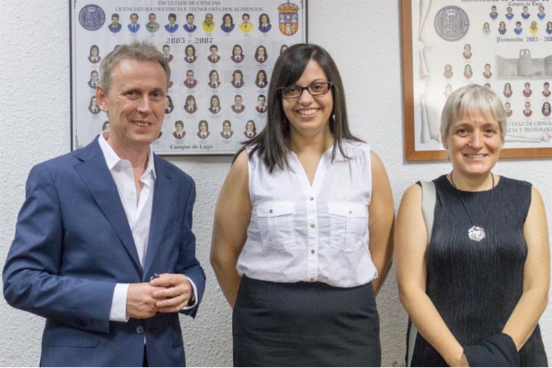 Sonia Freire, entre os directores da súa tese, os profesores Wajih Al-Soufi e Mercedes Novo, na Facultade de Ciencias