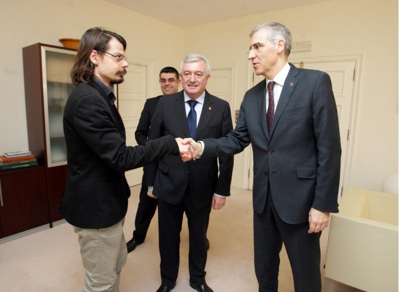 O reitor Juan Viaño e o conselleiro Francisco Conde reuníronse este luns co investigador, ao que o European Research Council (ERC) concedeu unha bolsa Starting Grant
