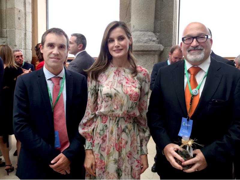 Eugenio Vázquez, primeiro pola dereita, coa raíña Letizia e o investigador do IMDEA Álvaro Somoza