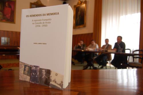 O investigador da USC Daniel Lanero presentou este mércores, día 16, o seu libro Os remendos da memoria. A represión franquista no Concello de Arzúa (1936-1950), editado polo propio concello coruñés. Ao acto, celebrado na Facultade de Xeografía e Historia, tamén asistiron o vicerreitor de Relacións Institucionais, Lourenzo Fernández; o alcalde de Arzúa, Xaquín García Couso; e o profesor de Historia Contemporánea da USC, Xesús Balboa.