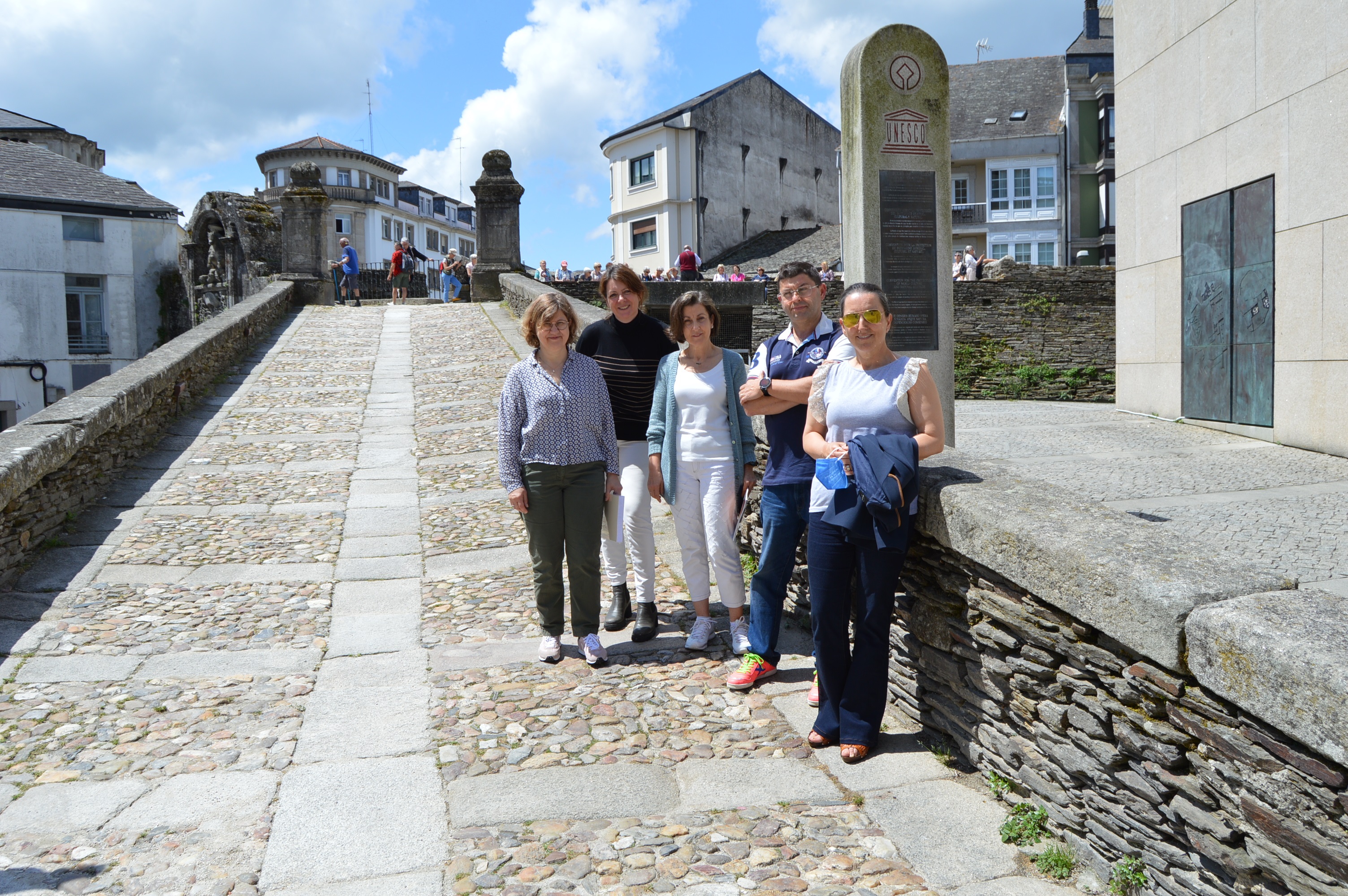 De esquerda a dereita, Salin, Bertrand, López, Fraga e Freire, na muralla romana de Lugo