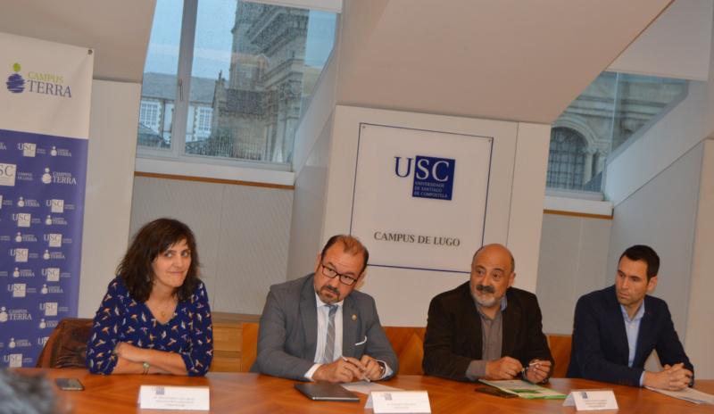 De esquerda a dereita, Valcárcel, López, Quiroga e De Anta, na presentción do convenio na Vicerreitoría de Coordinación de Lugo