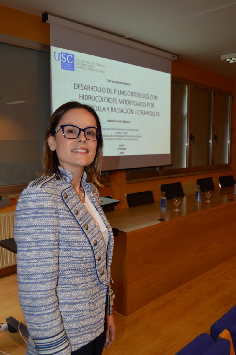 Unha investigación desenvolvida na Facultade de Ciencias do campus de Lugo contribúe á valorización de subprodutos da industria alimentaria e proba o seu aproveitamento para a elaboración de filmes acaídos para o envasado de alimentos e máis respectuosos co medio ambiente. Esta liña de traballo centra a tese de doutoramento realizada pola graduada en Nutrición Humana e Dietética e Tecnoloxía de Alimentos Davinia Candia Balseiro baixo o título ‘Desenvolvemento de filmes obtidos con hidrocoloides modificados por nanoarxila e radiación ultravioleta’.