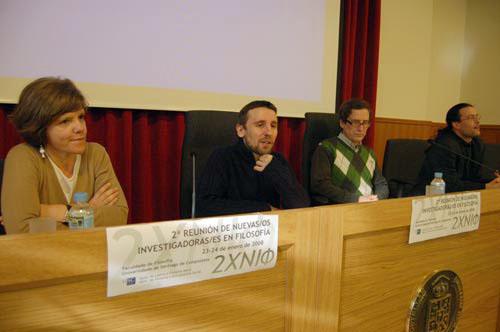 Un total de trinta e oito investigadores en Filosofía de varias universidades españolas expoñen as súas achegas ata este xoves 24 no transcurso da ‘II Xuntanza de Novas/os Investigadoras/es en Filosofía’. O encontro comezou este mércores, día 23, na Facultade de Filosofía da USC cun acto ao que asistiron os profesores Concepción Martínez Vidal e Xosé Ramón Mariño Ferro xunto cos organizadores da reunión, Óscar Horta e Javier Barcia.