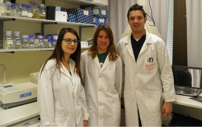 Sonia Caamaño, Karola Boehme y Marcos Quintela, nun dos laboratorios do LHICA