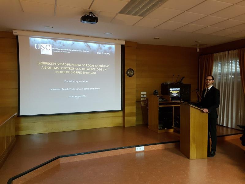 A USC desenvolve un índice de biorreceptividade que posibilita calcular o risco de colonización biolóxica das rochas graníticas e que se antolla como unha ferramenta de utilidade na selección dos granitos máis axeitados para empregar en construción ou como revestimento. Esta nova achega científica é un dos resultados da tese de doutoramento ‘Biorreceptividade primaria de rochas graníticas e biofilms fototróficos. Desenvolvemento dun índice de biorreceptividade’, unha investigación realizada por Daniel Vázquez Nion e dirixida polas profesoras do Departamento de Edafoloxía e Química Agrícola da USC Beatriz Prieto Lamas e Benita Silva Hermo na USC. A definición dun índice de biorreceptividade, isto é un parámetro que permita clasificar as rochas graníticas en función da maior ou menor susceptibilidade para seren colonizadas por organismos e microorganismos centrou o obxectivo prioritario desta investigación de doutoramento, cuxo autor pretende que esta nova ferramenta de clasificación pase a formar parte dos catálogos de granitos ornamentais e sirva de axuda á hora de seleccionar a rocha máis adecuada para construción ou revestimento. As posibilidades que ofrece o índice de biorreceptividade deseñado resulta relevante en tanto que un dos principais problemas para o mantemento do patrimonio monumental, e tamén das novas edificacións, responde a causas de colonización biolóxica. Daniel Vázquez Nion demostrou na súa investigación de doutoramento que existe unha relación directa entre a biorreceptividade dos granitos e as súas propiedades hídricas, tales como a porosidade e a capilaridade, así como unha forte influencia do acabado superficial sobre esta propiedade. A partir dos resultados obtidos en pescudas previdas, o investigador da USC establece unha metodoloxía para o cálculo do índice de biorreceptividade. Neste novo parámetro, Vázquez Nion inclúe a caracterización das comunidades microbianas presentes nas fachadas da cidade de Santiago de Compostela, o desenvolvemento de cultivos multiespecie a partires destes biofilms naturais e a definición dun protocolo experimental para determinar a biorreceptividade das rochas en laboratorio. Deste xeito, foi posible elaborar unha escala para a clasificación das rochas graníticas en función da súa susceptibilidade á colonización biolóxica, a cal poderá ser empregada polos usuarios finais (arquitectos, restauradores, enxeñeiros, etc.) como unha ferramenta para a selección adecuada de materiais de construción tendo en conta criterios de duración. Tribunal da tese A investigadora do Instituto de Recursos Naturais e Agrobioloxía de Sevilla (IRNAS-CSIC) Ana Miller, presidiu o tribunal da tese, do que tamén formaron parte a profesora da Universidade de Vigo Graciela Paz Bermúdez e a investigadora da Fundación Centro Tecnolóxico do Granito Nuria Sánchez Delgado. A tese mereceu a máxima cualificación de sobresaínte cum laude.