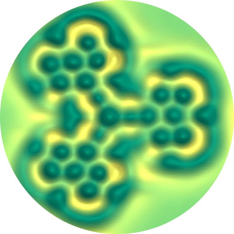Imaxe dun nanografeno con forma de trébol, obtida por microscopía de forza atómica