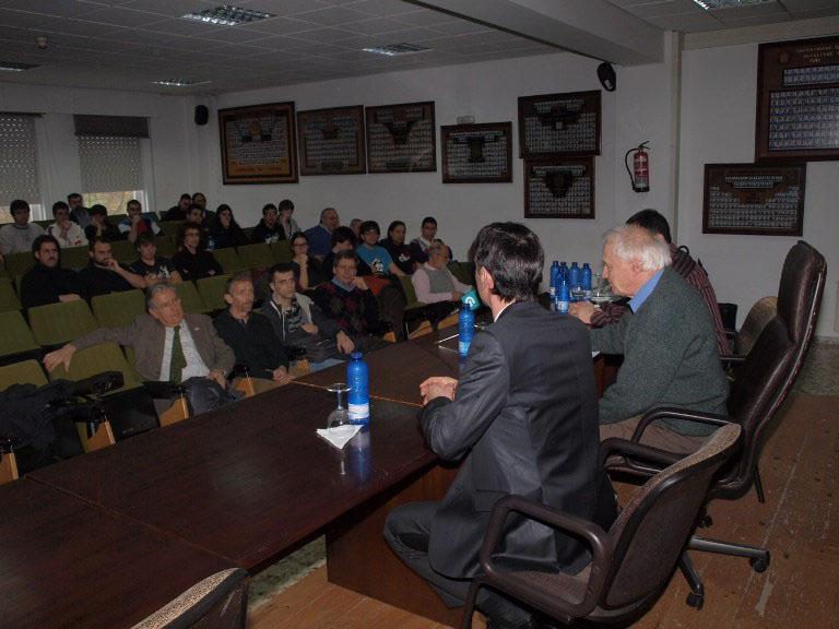 Leggett compartiu co persoal científico as súas últimas reflexións acerca de certos fenómenos cuánticos (Foto:SERVIMAV)