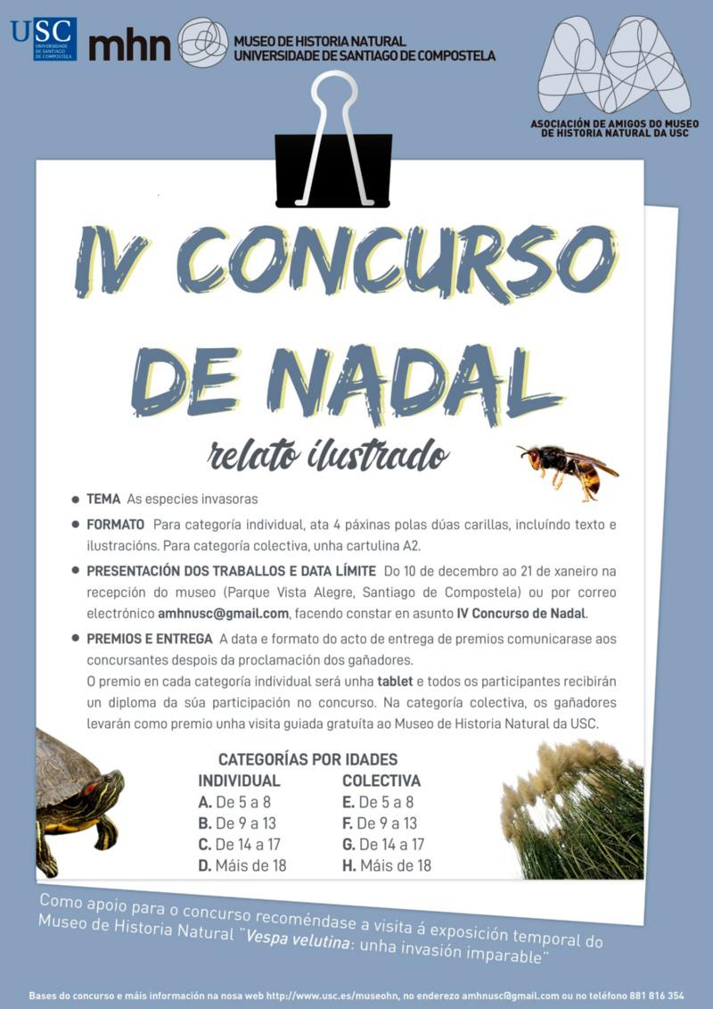 A Asociación de Amigos do Museo de Historia Natural da USC organiza este Nadal por cuarto ano consecutivo o seu concurso de relatos curtos ilustrados, nesta ocasión sobre o tema As especies invasoras.