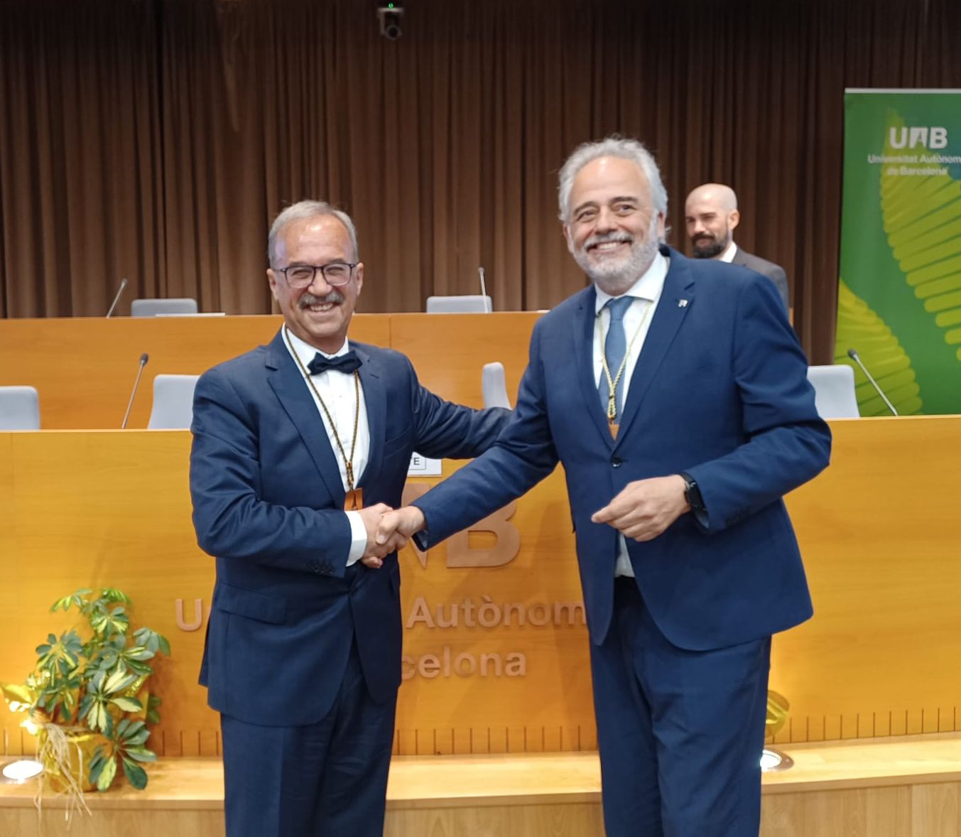 Juan Manuel Lema, profesor emérito da USC, acaba de ser investido doutor honoris causa pola Universidade Autónoma de Barcelona (UAB). O reitor Javier Lafuente subliñou do profesor Lema "o seu carácter reflexivo e afable, o seu rigor e o seu exemplo na defensa dunha concepción de universidade profundamente comprometida co avance da ciencia e co progreso da sociedade". Antes de incorporarse á USC, Lema foi profesor do Departamento de Enxeñaría Química da UAB, onde dirixiu as primeiras investigacións nos campos da enxeñaría ambiental e da enxeñaría biolóxica.Ademais, convértese no primeiro honoris causa da Escola de Enxeñería da UAB nos seus máis de vinte anos de historia.