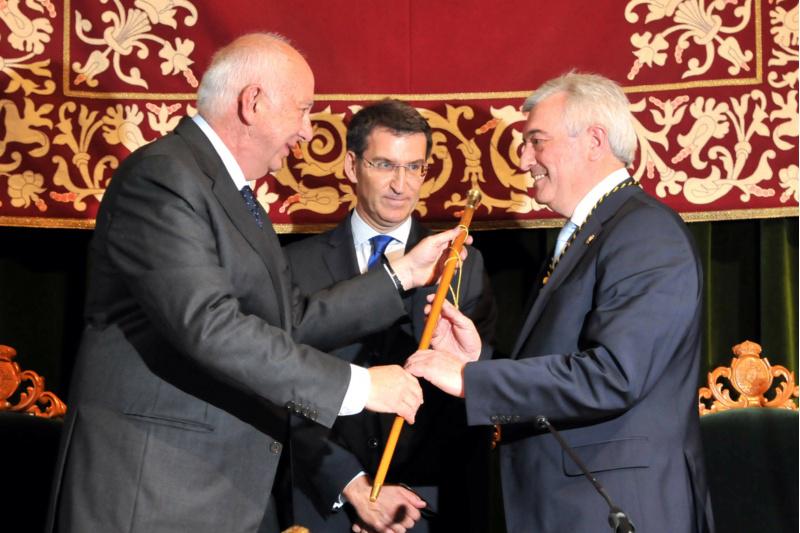 Juan Viaño recibiu o bastón reitoral de mans de Juan Casares, en presenza do titular da Xunta de Galicia Alberto Núñez Feijóo. Foto: Santi Alvite