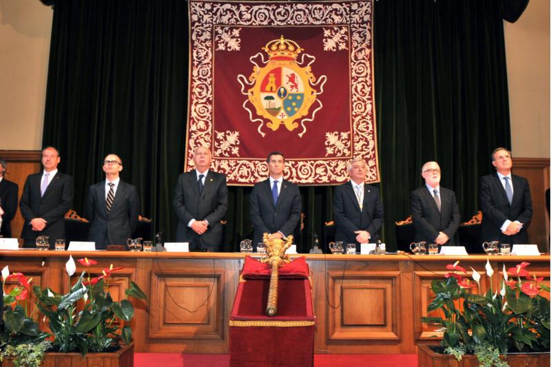 No seu primeiro discurso como reitor da Universidade de Santiago de Compostela, Juan Viaño anunciou “cambios importantes nos procesos de xestión, de calidade, de oferta académica, de investigación e de internacionalización”. O novo reitor asume que “estamos nun mundo globalizado e temos que artellar o noso funcionamento para ser máis eficientes e eficaces”. Neste contexto trazou o primeiro obxectivo do seu equipo de goberno para os vindeiros doce meses, “queremos medrar globalmente un cinco por cento”. Esta é, na súa opinión, unha meta “realista, plausible e, sobre todo, necesaria para ter un futuro distinto do que se debuxou nos últimos tempos”. “Conseguirémolo con coñecemento e con capacidade de análise, e nós temos ambas as dúas”, dixo ao tempo que sinalou que para alcanzar este obxectivo serán moitos os parámetros “que temos que mellorar”, como o número de estudantes de grao, másteres e doutoramento; os ingresos por investigación, por docencia e por xestión do patrimonio; os indicadores de reputación; a oferta académica e a mellora dos tempos de resposta ao público. Juan Viaño tomou posesión do seu cargo como reitor da USC nun acto protocolario celebrado este luns 9 no Colexio de Fonseca baixo a presidencia do titular da Xunta de Galicia, Alberto Núñez Feijóo, e acompañado do ata agora reitor Juan Casares, e dos seus homólogos das Universidades de A Coruña e Vigo, Xosé Luís Armesto Barbeito e Salustiano Mato de la Iglesia, do conselleiro de Cultura, Educación e Ordenación Universitaria, Xesús Vázquez Abad, e do presidente do Consello Social da USC, José Mª Arias Mosquera. Comprendendo a acción de gobernar como a de “exercer a responsabilidade de dirixir, de tomar decisións que apunten a un novo rumbo baseadas na busca do consenso pero tamén na convición”, o reitor Viaño reafirmou a súa crenza na autonomía universitaria e engadiu que “o mellor xeito de demostralo é exercitándoa con responsabilidade”. A partir desta idea, comprométese a “cambiar os mecanismos de toma de decisións, a comprender as demandas e necesidades dos actores públicos e privados, pero sen renunciar á nosa razón de ser como Universidade e como universitarios”. “A Universidade máis cara é a que languidece sen recursos e sen rumbo. O máis barato é estar mortos. Non aceptaremos nin unha cousa nin a outra”, aseverou nun momento da súa intervención na que tamén dixo que a Universidade debe “propoñer e practicar solucións e non só reclamacións”. Na súa crenza nunha universidade pública e na igualdade de oportunidades, Viaño saudou que o goberno autonómico non suba as taxas ao tempo que lembrou que “a formación ten un custe elevado e debemos asumilo entre todos”. Na súa opinión, a sociedade precisa tamén que “os seus fillos e fillas teñan unha formación acorde coas necesidades dun mundo laboral cada vez máis esixente”. Como Universidades, “ comprometémonos a mellorar dúas cousas imprescindibles: a captación de recursos no eido público e privado e a ofrecer unha formación de calidade, que cumpra coas expectativas” e que permita aumentar o número de estudantes. Neste senso, dixo agardar da administración públicas colaboración, “esixíndonos o máximo pero asumindo o custe real deste compromiso público”. O reitor aludiu así a un novo plan de financiamento pero tamén a axuda “para a captación de novo talento docente e investigador e do apoio aos retos estratéxicos para Galicia que abordaremos nestes anos”. O novo reitor opina que os recursos non investidos en educación e investigación “non supoñen aforros, senón agrandar a fende entre o que somos e o que queremos ser; entre o que temos e o que nos gustaría ter”. Se as universidades non reciben os recursos necesarios, “a afectada é a nosa mocidade, porque se lles furta unha oportunidade vital: a posibilidade de aproveitar o talento e o coñecemento para unha maior riqueza e calidade de vida”. No seu discurso de despedida, Juan Casares Long reflexionou sobre o concepto de universidade e o seu papel na sociedade, tanto no presente coma no pasado e no futuro. Nun contexto complexo para a Educación Superior, “con desenvolvementos normativos que reduciron tanto o financiamento como a autonomía universitaria, o equipo de goberno que tiven a honra de dirixir nestes anos traballou con empeño e ilusión para facer fronte ás limitacións”. Casares Long agradeceu a todos os que o acompañaron nestes catro anos a súa ilusión e empeño e repasou os logros conseguidos pola USC neste tempo no campo institucional, económico, na actividade docente e investigadora, así como no relativo á responsabilidade social da institución. Para pechar o acto, o presidente da Xunta de Galicia Alberto Núñez Feijóo vinculou o desenvolvemento de Galicia como comunidade ao desenvolvemento da súa institución universitaria encarnada na USC cinco veces centenaria. O titular da administración autonómica considera que Galicia “ten unha débeda con esta universidade porque é o seu berce”, ao tempo que engadiu non ignorar os sacrificios realizados pola institución académica nos últimos anos.