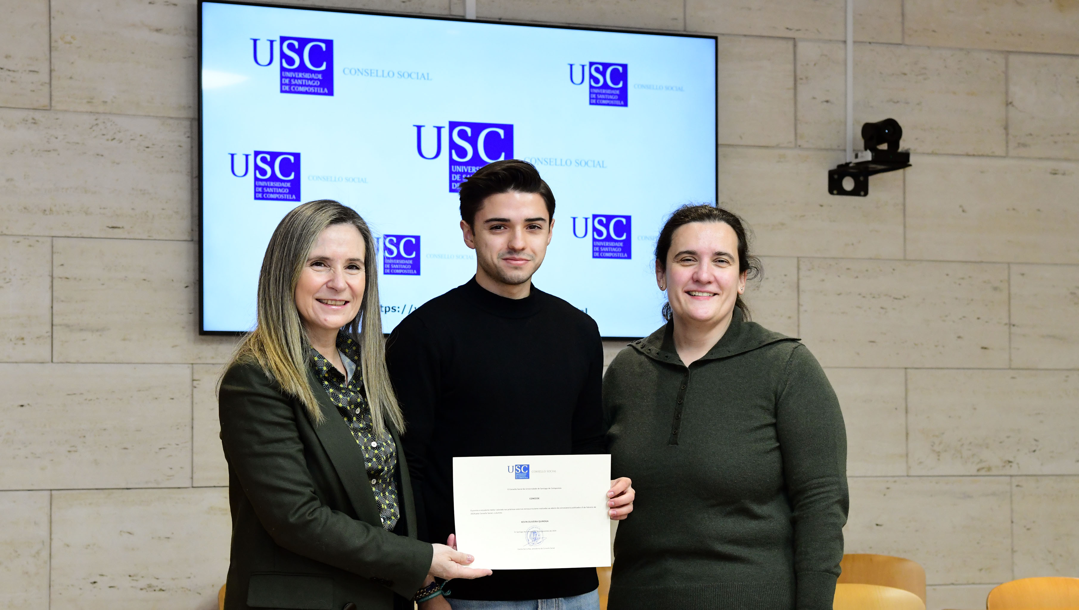 O premio está dotado con 1.500 euros e outórgase dúas veces ao ano, coincidindo cos períodos das convocatorias de febreiro e setembro. A través deste recoñecemento, o Consello Social da USC quere impulsar a realización destas actividades, premiando a excelencia e o esforzo do alumnado no seu desempeño. A presidenta do Consello Social da USC, Cecilia Sierra, fixo entrega do diploma acreditativo a Kevin Oliveira, quen amosou a súa satisfacción polo desenvolvemento das prácticas, “un modo de aprendizaxe para ver o funcionamento do dereito e da práctica do dereito nun despacho que leva asuntos moi diversos”.