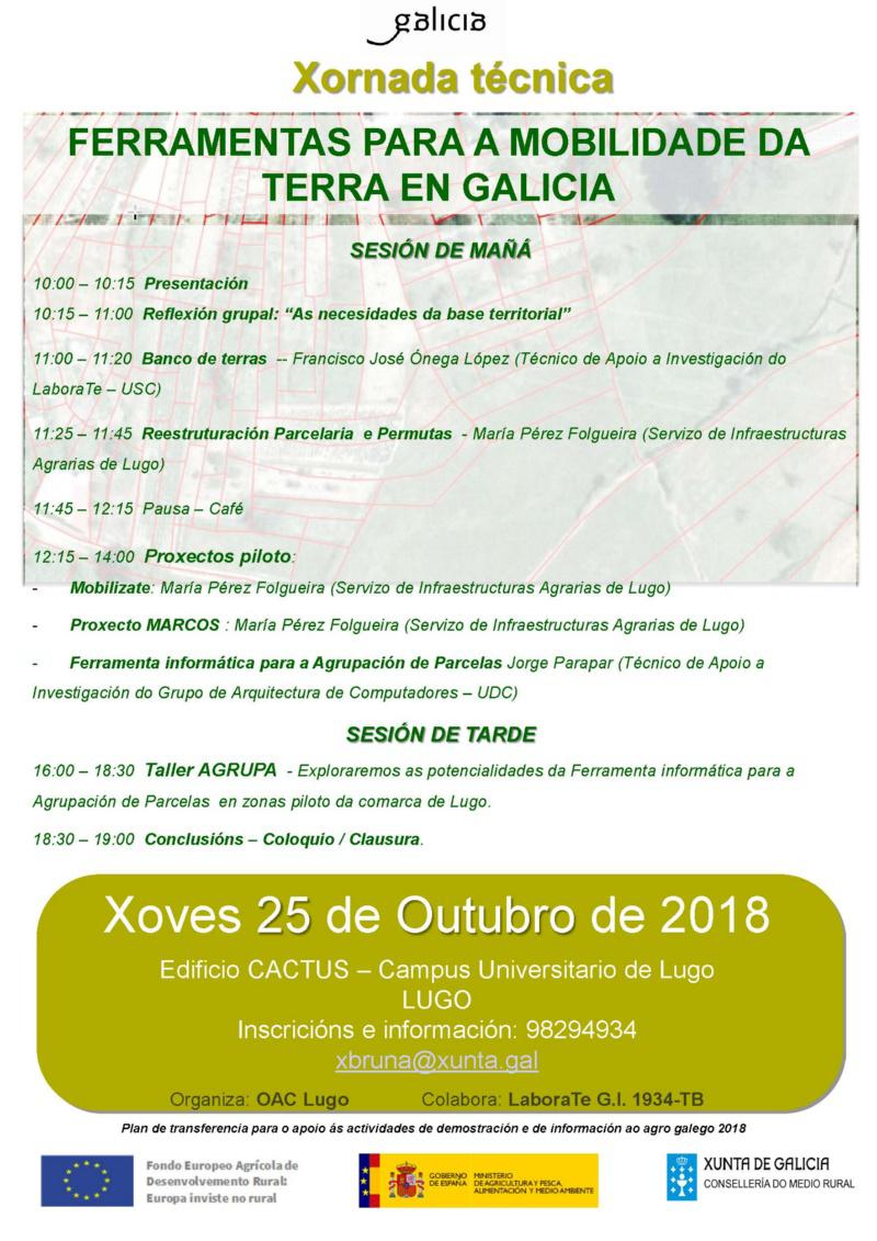 O Laboratorio do Territorio (LaboraTE) da USC e a Oficina Agraria Comarcal de Lugo dependente da Consellería de Medio Rural organizan este xoves, a partir das 10.00 horas, no edificio Cactus do campus de Lugo, unha xornada técnica sobre mobilidade das terras en Galicia.