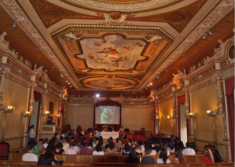 As ‘ V Leccións Xacobeas Internacionais na USC. Diáspora xacobea’ comezaron este xoves a súa programación, incluída na Universidade de Verán da USC, e que se estenderá ata o vindeiro domingo 29 baixo a dirección do profesor de Historia da Arte da USC Miguel Taín Guzmán. A inauguración celebrouse no Paraninfo da Universidade (Facultade de Xeografía e Historia) presidida polo reitor da USC, Juan Casares, e coa participación ademais do xerente da S.A. de Xestión do Plan Xacobeo, José Paz; o deán da Catedral de Santiago, José María Díaz; e o director do curso. Asisten ademais representantes das entidades colaboradores como as asociacións galegas de Empresas e Profesionais da Conservación e Restauración de Bens Culturais ou a Profesional de Historiadores de Arte. Os relatorios serán impartidos por especialistas de institucións europeas relacionadas co xacobeo. O día 26 está dedicado ao estudo da difusión xacobea, en especial a peregrinación, a catedral e a festa do Apóstolo, mentres que a xornada do 27 tratará sobre os códices e manuscritos composteláns. A diáspora xacobea será a temática da terceira sesión do curso, que rematará o día 29 cunha ruta a pé polo tramo entre Lira e Cabo de Fisterra guiada por socios da Asociación Galega de Amigos do Camiño de Santiago (AGACS). Ademais das leccións propiamente académicas, o programa contempla unha serie de actividades de índole cultural como visitas guiadas ao patrimonio xacobeo de Santiago, aos Museos da Catedral, das Peregrinacións e de Santiago e outra coa explicación das restauracións do Coro Lígneo da Catedral de Santiago e os retablos da Capela de Ánimas por parte dos seus autores. Tamén está prevista a proxección de dúas películas relacionadas coa temática do curso. O Paraninfo da Universidade foi o lugar escollido para a celebración destas Leccións Xacobeas. Foto: Alfonso (Servimav-USC)