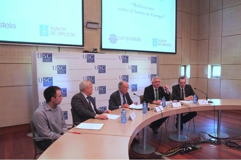 O presidente do Instituto de Estudos Europeos da Universidade CEU-San Pablo e presidente de honra da Real Academia de Ciencias Morais e Políticas, Marcelino Oreja Aguirre, reflexionou este martes no Centro de Estudos Avanzados da USC (CEA) sobre o futuro de Europa.
