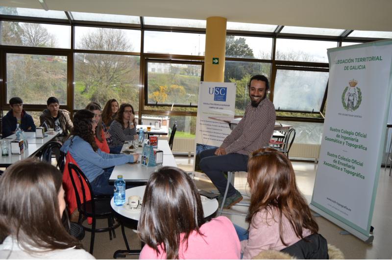 O proxecto ‘Xeomática e café’, unha iniciativa promovida pola delegación territorial de Galicia do Colexio Oficial de Enxeñaría Xeomática e Topográfica coa que se pretende, a través de encontros informais, divulgar contidos profesionais, científicos, académicos e laborais transversais de interese para as comunidades de enxeñeiros, en especial para as graduadas e os graduados en Enxeñaría en Xeomática e Topografía, botou a andar este venres na Escola Politécnica Superior do Campus Terra da USC cunha sesión na que se afondou sobre o cometido da xeomática nos proxectosd e cooperación internacional.