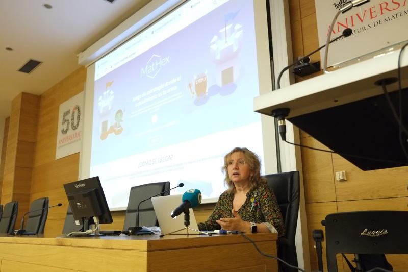 A profesora Elena Vázquez Abal presentoulle MatHex aos medios de comunicación. Foto: Servimav