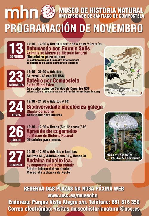 O programa continuará o 26 de novembro co obradoiro infantil (de 6 a 12 anos) ‘Aprende de cogomelos no Museo de Historia Natural’ e rematará o domingo 27 con outra andaina micolóxica pola cidade.