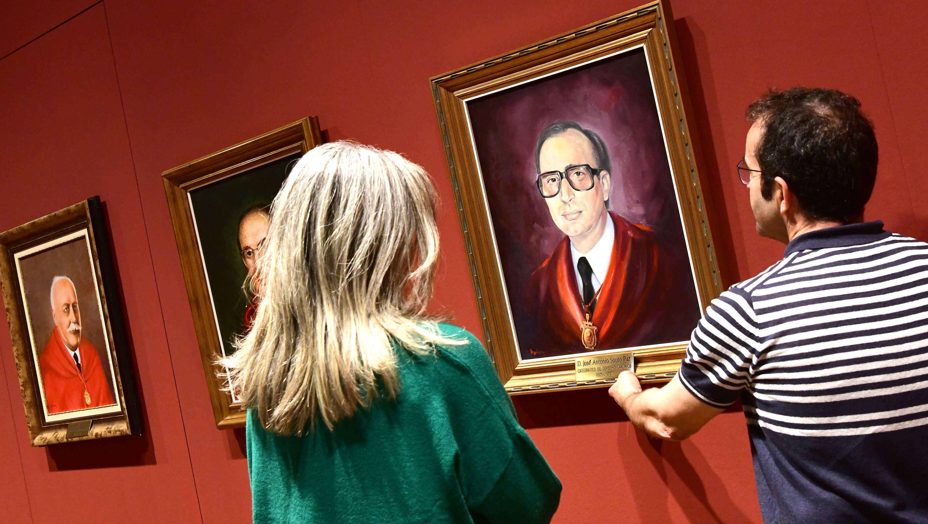 A estrutura da exposición acolle, neste espazo, os retratos dunha selección de reitores realizada dende o tempo de Lope Sánchez de Ulloa, no século XVI, ata García Garrido, quen conclúe o seu mandato en 1972. As Facultades de Medicina, Dereito e Farmacia tamén están presentes a través das representacións dos seus decanos.