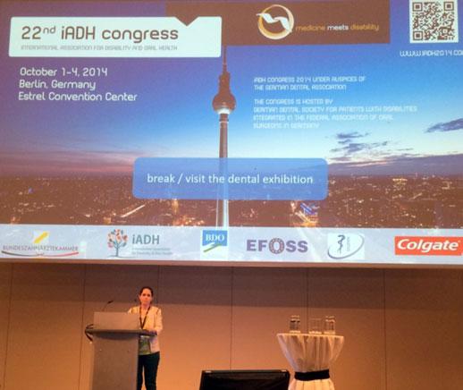 A Universidade de Santiago tivo a pasada semana unha presenza destacada no 22 Congreso da International Association for Disability and Oral Health (iADH) que se celebrou en Berlín. Trátase da cita máis importante do mundo no campo da odontoloxía para pacientes con discapacidade, que reuniu máis de 500 participantes de 40 nacionalidades. Da USC interviñeron os docentes de Odontoloxía María Teresa Abeleira e Pedro Diz. A participación da USC neste importante evento científico responde á destacada traxectoria da Unidade de Pacientes Especiais da USC que dirixe o profesor Pedro Diz no ámbito do tratamento ortodóncico de pacientes con discapacidade.