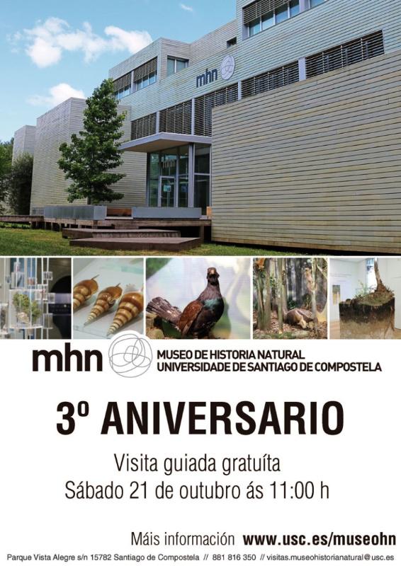Con motivo do terceiro aniversario da apertura do Museo de Historia Natural da Universidade de Santiago de Compostela, este sábado 21 terá lugar unha visita guiada de acceso libre e gratuíto para o público xeral. Para participar non é preciso máis que estar puntuais na recepción do Museo ás 11.00 horas.