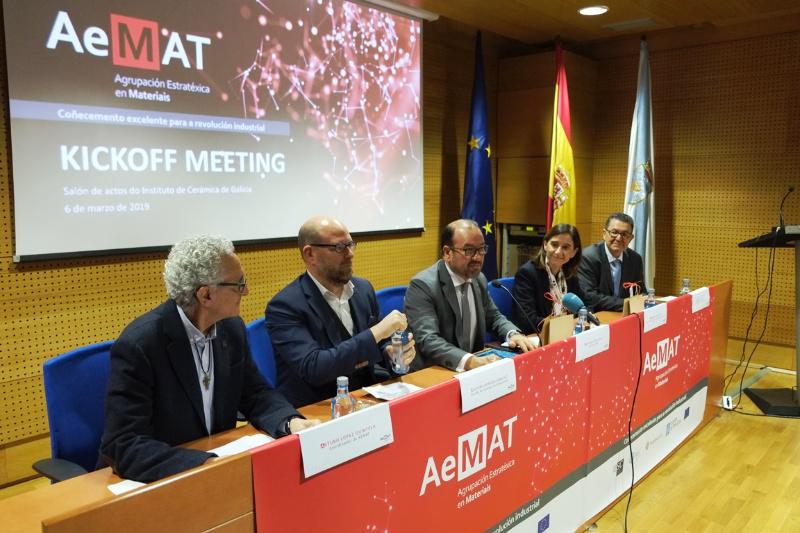 A rede, que nace co obxectivo común de elevar as súas capacidades científicas e de transferencia de coñecemento aos sectores produtivos, presentouse este martes no Instituto de Cerámica da USC nunha sesión que presidiu o reitor Antonio López e na que tamén participaron os coordinadores de AEMAT, os profesores Arturo López Quintela e José Rivas; a conselleira de Educación, Universidade e FP, Carmen Pomar, e o alcalde de Santiago, Martiño Noriega.