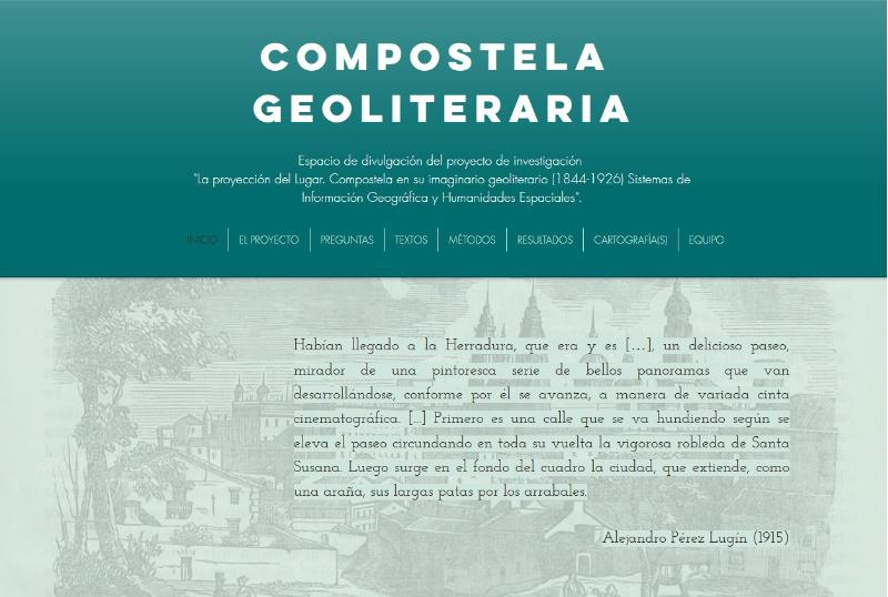 Baixo o título ‘ Compostela Xeoliteraria’ acaba de publicarse un web dedicado a divulgar os resultados dun ambicioso proxecto que ten como obxectivo a análise da conformación de Santiago de Compostela como cidade literaria e no que participan investigadores das universidades de Santiago, Cáceres e Huelva, especialistas en estudos literarios e xeografía. O contacto entre estas áreas de estudo ofrece un terreo de investigación e interpretación cun forte desenvolvemento internacional nos últimos anos, especialmente mercé ás novas ferramentas cartográficas e infográficas. É o caso das coñecidas como "humanidades espaciais".