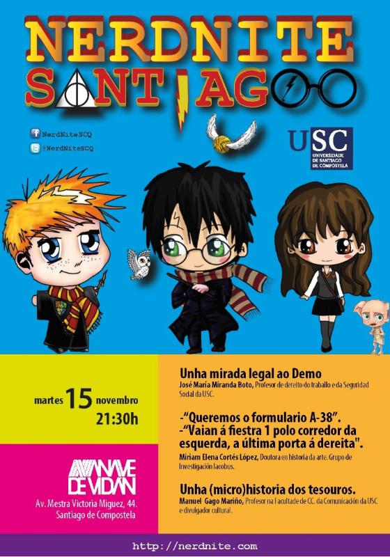 Para completar o trío de intervencións que habitualmente integran as NerdNites, o divulgador cultural e profesor de Ciencias da Comunicación Manuel Gago Mariño presentará ‘Unha (micro)historia dos tesouros’. A sesión comezará ás 21.30 horas na Nave de Vidán. As NerdNites naceron hai anos en Estados Unidos, unha proposta orixinal á que se sumou Santiago en 2012, sendo a primeira cidade española en facelo.