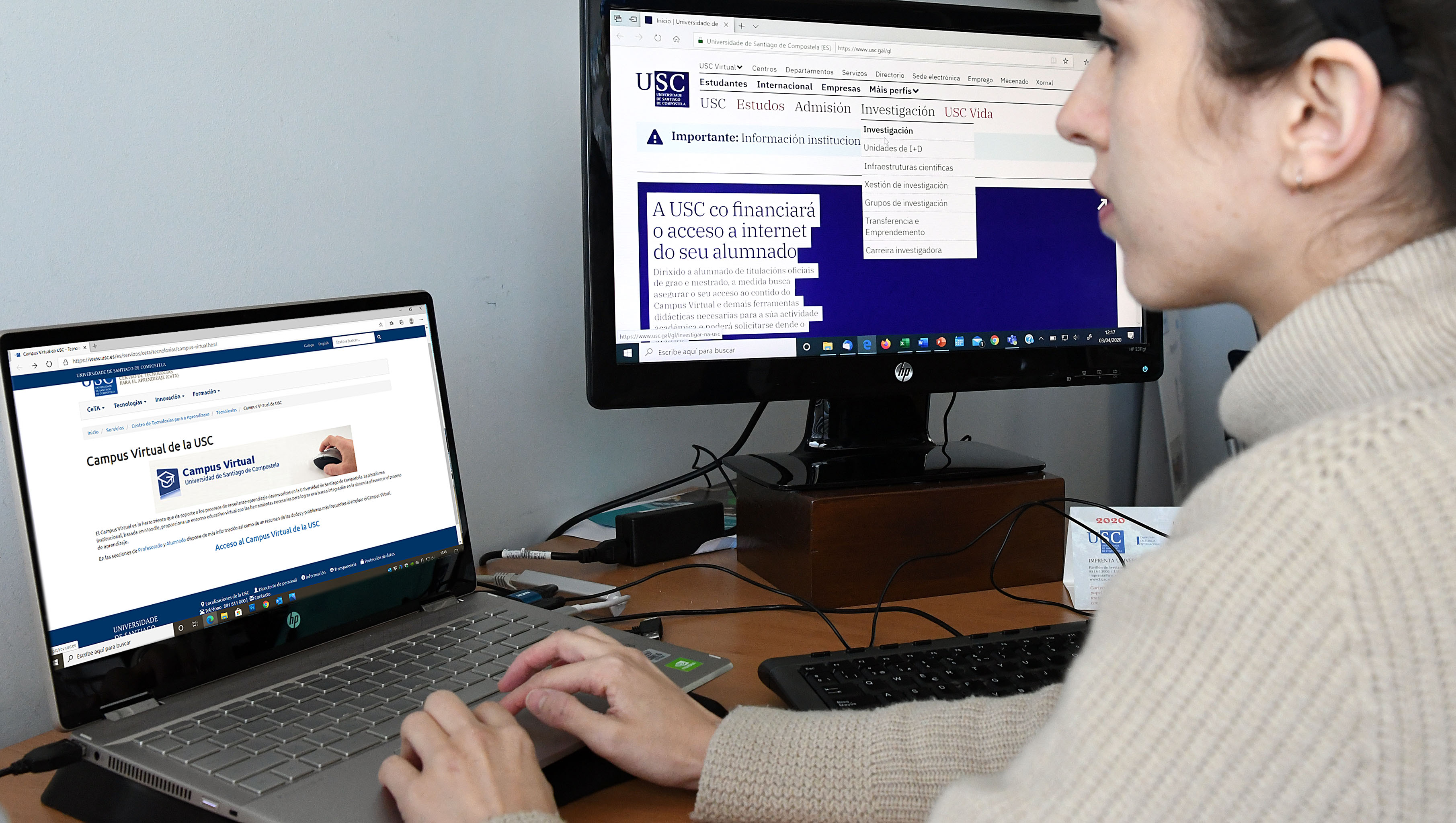 Cofinanciar os servizos de internet para o alumnado coa finalidade de que poida acceder ao contido do Campus Virtual e demais ferramentas didácticas necesarias para a súa actividade académica, é a finalidade das axudas que acaba de convocar a USC. A través da resolución reitoral publicada este mércores, a Universidade farase cargo do 90% do gasto realizado pola persoa beneficiaria ata un máximo de 40 euros por persoa. O período subvencionable abarcará o gasto realizado desde o 16 de abril e o 15 de maio.