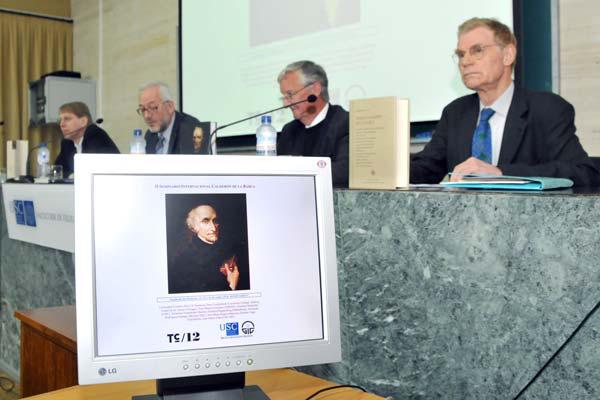 Unha biografía e dúas obras sobre aspectos concretos da obra de Calderón de la Barca son os tres volumes que este luns se presentaron na Facultade de Filoloxía dentro das actividades do II Seminario Internacional Calderón de la Barca. Estes tres volumes son da autoría doutros tantos integrantes do Grupo de Investigación Calderón da USC (GIC), dirixido polo profesor Luis Iglesias Feijoo e integrado no Proxecto Consolider-Ingenio ‘Patrimonio Teatral Clásico Español’. Os traballos forma parte dunha liña de traballo que está levando a cabo a edición de todo o teatro de Calderón de la Barca. As obras que se presentaron son Pedro Calderón de la Barca. Cuarta parte de comedias, de Sebastian Neumeister; Don Pedro Calderón, de Don W. Cruickshank; e Psique y alegoría. Estudios del auto sacramental español desde sus comienzos hasta Calderón, de Gerhard Poppenberg. Segundo destacou Luis Iglesias, este catálogo seguirá crecendo nun futuro inmediato coa edición de dous novos títulos, actualmente en imprenta. Dentro do conxunto xeral da edición completa de comedias calderonianas realizada polo grupoGIC, o catedrático da Frei Universitat de Berlín publica o tomo cuarto que corresponde ás doce comedias da Cuarta parte de Calderón. Xunto a esta obra, tamén se presentou “a máis completa biografía” calderoniana escrita polo especialista británico Don W. Cruickshank que “máis alá dos seus valores como documento biográfico, se propón como unha auténtica enciclopedia sobre o dramaturgo”, sinalo Luis Iglesias. Completando a presentación, Psique y alegoría está deseñada como “a monografía máis completa sobre o auto sacramental dende Lope de Vega ata Calderón publicada nos últimos anos”, destacou o director do grupo de investigación. Gerhard Poppenberg, catedrático da Universidade de Heidelberg, recolle nesta obra a tradición filolóxica do calderonismo alemán para ofrecer unha revisión da interpretación ideolóxica e poética do xénero. Seminario O II Seminario Internacional Calderón de la Barca contou na primeira quenda de intervencións coa participación de investigadores do University College (Dublín), Universidade de París-X e da Freie Universitat Berlin, tratando cuestións relacionadas co tratamento do cómico, a función da carta na comedia ou a lectura de La vida es sueño, de Calderón.