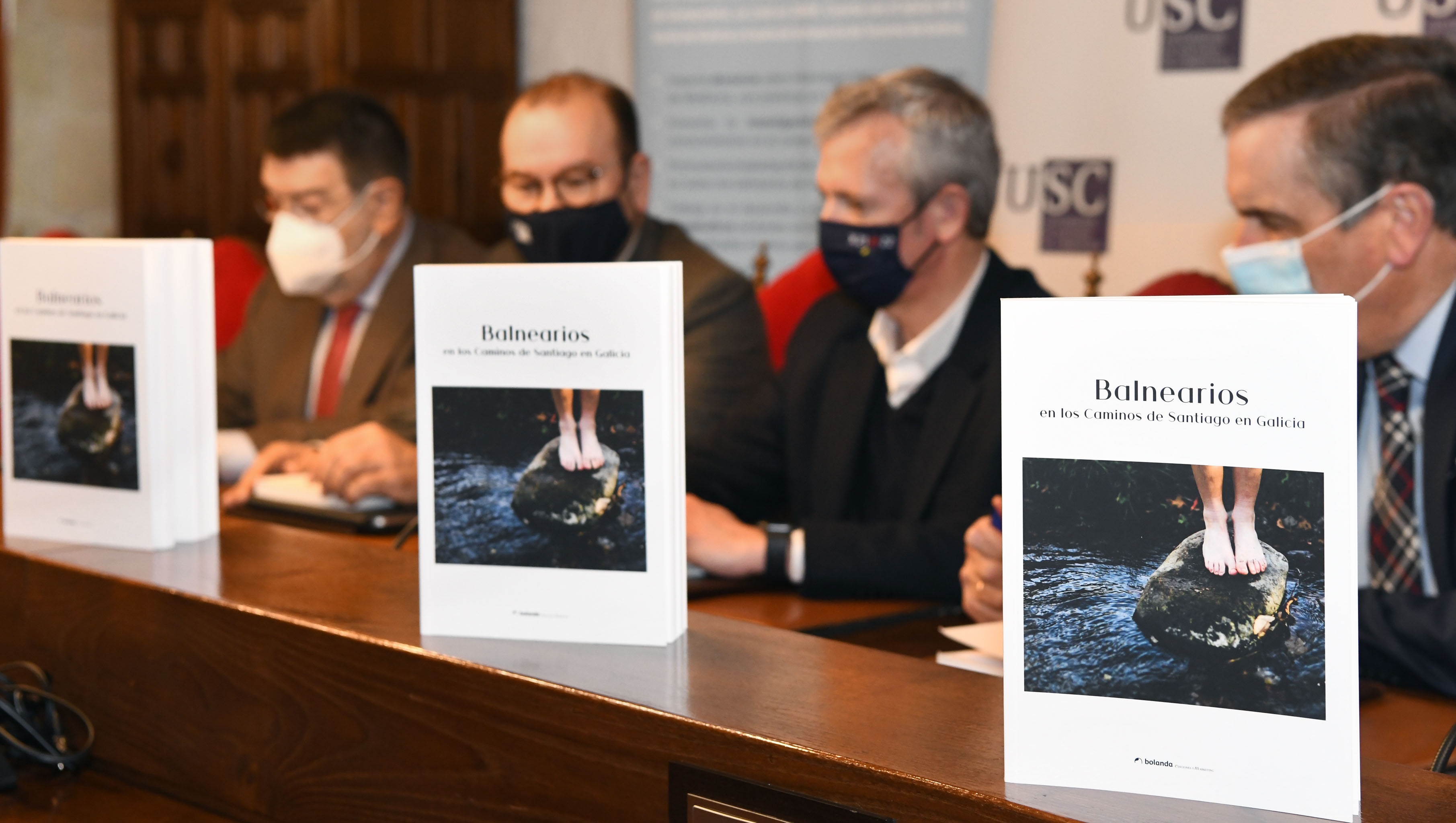 O acto contou coa intervención do reitor Antonio López, o vicepresidente primeiro e conselleiro de Presidencia, Xustiza e Turismo da Xunta de Galicia, Alfonso Rueda; o profesor emérito da USC e director da Cátedra impulsora do volume, Juan Gestal; e Antonio Couto Rego de Edicións Bolanda. Antonio López puxo o foco en como esta obra serve para “poñer en valor os balnearios e a hidroterapia, algo que é consubstancial á nosa realidade como galegos e galegas, ademais de ter unha proxección económica, social e cultural”, dixo.