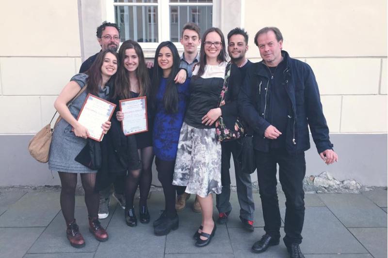 Integrantes da Aula de Teatro compostelá logo de recoller o premio do Festival de Vilnius. Foto: Aula de Teatro da USC