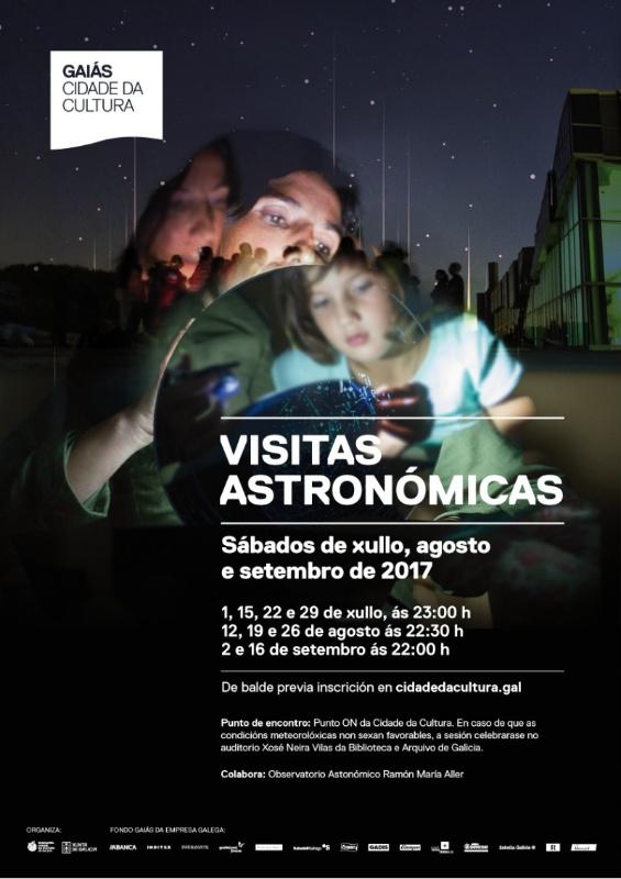 Nos sábados de xullo, agosto e setembro, o Observatorio Astronómico Ramón María Aller da USC colaborará un ano mais no desenvolvemento das Visitas Astronómicas que organiza a Cidade da Cultura de Galicia. Para poder participar nelas é necesario apuntarse na dirección web de dito organismo (http://www.cidadedacultura.gal/gl/evento/visitas-astronomicas-2017).
