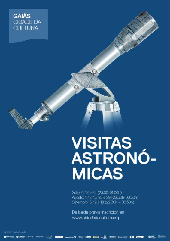 Por quinto ano consecutivo, o Observatorio Astronómico Ramón María Aller da USC (OARMA) coordinará a realización dun amplo abano de actividades de astronomía para todos os públicos incluído na programa ‘Verán no Gaiás’ da Cidade da Cultura de Galicia. Ao longo dos próximos tres meses, os venres dende o 4 de xullo ao 19 de setembro realizaranse once sesións de observación nocturna en monte Gaiás nas que as persoas que participen poderán recoñecer constelacións a simple vista e observar a través de telescopios a Lúa, planetas, estrelas dobres, cúmulos estelares ou nebulosas. Concretamente, as observacións están previstas os días 4, 18 e 25 de xullo a partir das 23.00 horas; os días 1, 12, 15, 22 e 29 de agosto dende as 22.30 horas e en setembro os días 5, 12 e 19 a partir das 22.30 horas. A xornada do día 12 de agosto estará dedicada fundamentalmente á observación das estrelas fugaces Perseidas. As actividades de observación estarán acompañadas de informacións de interese, comentarios e anécdotas en relación cos obxectos a observar por parte dos monitores do OARMA, coa finalidade de facer as sesións o mais atractivo posible. As persoas interesadas poderán participar de balde nas actividades propostas previa inscrición na web www.cidadedacultura.org.