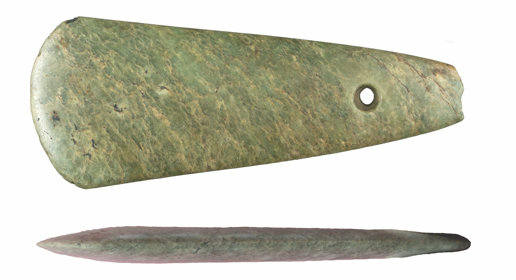 Os resultados destas análises confirman que a rocha verde na que está fabricada a peza atopada en Vilapedre, trátase dunha xadeíta que moi probablemente viña das inmediacións do curso alto do río Po