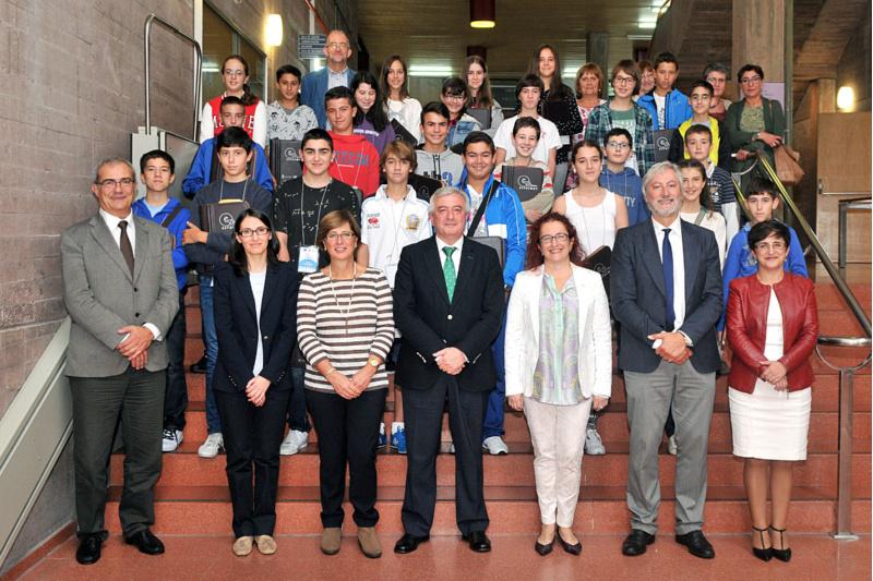 Os 25 rapaces e rapazas de 12 e 13 anos que conforman a oitava promoción do proxecto de estímulo do talento matemático (Estalmat) iniciaron este sábado 20 a súa participación neste programa, nunha sesión na Aula Magna da Facultades de Matemáticas e na que estarán acompañados das súas familias, autoridades académicas e equipo docente do proxecto. Ao final da sesión, o alumnado recibirá a súa acreditación para logo dirixirse ao campamento matemático que durante a fin de semana se vai celebrar no Albergue de Ecoturismo Alvarella-Vilamaior na Coruña, que supón unha toma de contacto entre os participantes desta promoción nun ambiente lúdico-matemático. O acto de apertura presidiuno o reitor Juan Viaño, quen ademais é presidente do comité organizador de Estalmat, xunto a quen tamén estiveron presentes a coordinadora xeral de Estalmat Galicia, a profesora Elena Vázquez Cendón, a vicedecana da Facultade de Matemáticas, Rosa Crujeiras, ademais dos representantes dos patrocinadores do programa. Completarán a mesa o coordinador académico de Estalmat Galicia, Víctor Pollán Fernández, a coordinadora das familias, Covadonga Rodríguez Moldes Rey, e a secretaría do comité organizador, Marina Gemiñás Miguéns. O alumnado que conforma a promoción 2014 seleccionouse entre os 298 rapaces e rapazas presentados ás probas celebradas o pasado 7 de xuño procedentes de toda Galicia e nacidos entre 2001 e 2002. As probas concorreron 180 rapaces e 118 rapazas, procedentes na súa maioría das provincias da Coruña (158) e Pontevedra (98), seguidas de Lugo (27) e Ourense (15), tanto do ensino público (201) como privado (97). Os 25 seleccionados (17 rapaces e 8 rapazas) proceden igualmente das catro provincias, 13 da Coruña, 7 de Pontevedra, 3 de Ourense e 2 de Lugo. Dende os seus inicios, Estalmat Galicia ten examinado na Facultade da USC a máis de 2.000 estudantes con potencial talento matemático e seleccionado a 200 rapaces/zas para incorporar ás súas actividades. Durante o curso o estudantado seleccionado seguirá un programa especial de estímulo do talento matemático baixo as directrices do Proxecto ESTALMAT-España, que dende o ano 1998 vén implantándose en distintas comunidades como Madrid, Cataluña, Castela e León, Castela-A Mancha, Andalucía, Canarias, Valencia e Cantabria. Estas actividades terán lugar na Facultade de Matemáticas nas mañás de 20 sábados do curso académico. Trátase de detectar e prestar atención a nenos e nenas con talento que, en moitos casos, poden quedar desatendidos nas esferas normais do ensino e da familia. Estalmat Pi Á semana seguinte, o próximo día 27, comezarán as súas actividades o alumnado do 2º ano da promoción 2013. Ademais, Estalmat-Galicia mantén o programa ESTALMAT Pi, dirixido a manter o contacto con promocións anteriores dous anos máis a través de actividades impartidas en seis sábados do curso. O Proxecto ESTALMAT-España está avalado cientificamente pola Real Academia Española de Ciencias Exactas, Físicas y Naturales e o CSIC e conta co apoio financeiro da Fundación Española de Ciencia y Tecnología (FECYT). ESTALMAT-Galicia, pilotado pola Facultade de Matemáticas da USC, ademais de participar destas axudas, conta cun financiamento específico da Consellaría de Educación e Ordenación Universitaria e das deputacións da Coruña e Lugo e o Concello de Guitiriz.