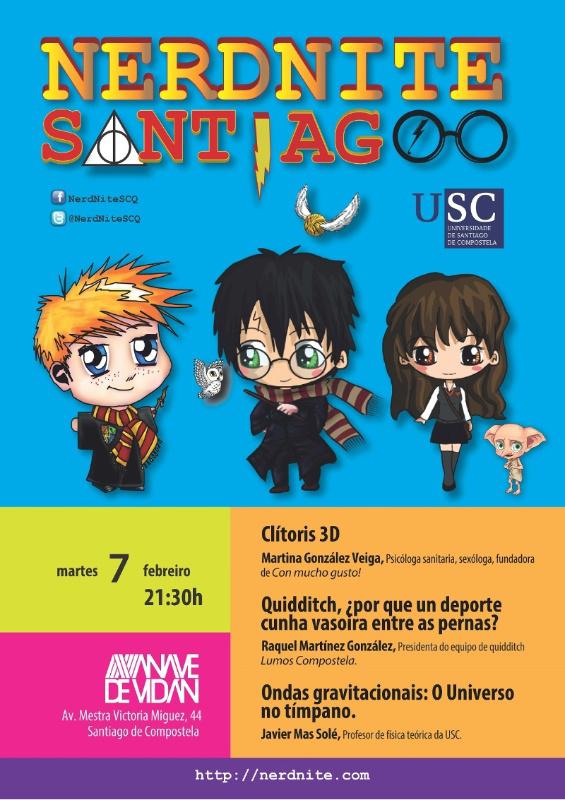 Nesta ocasión intervirán o profesor de Física Teórica da USC Javier Mas Sole coa charla ‘ Ondas gravitacionais: o Universo no tímpano’; a psicóloga sanitaria, sexóloga e fundadora de ‘Con mucho gusto!’, Martina González Veiga, con ‘Clítoris 3D?, e a presidenta do equipo de quidditch Lumos Compostela, Raquel Martínez González, que botará luz sobre un deporte que se xoga “cunha vasoira entre as pernas”.
