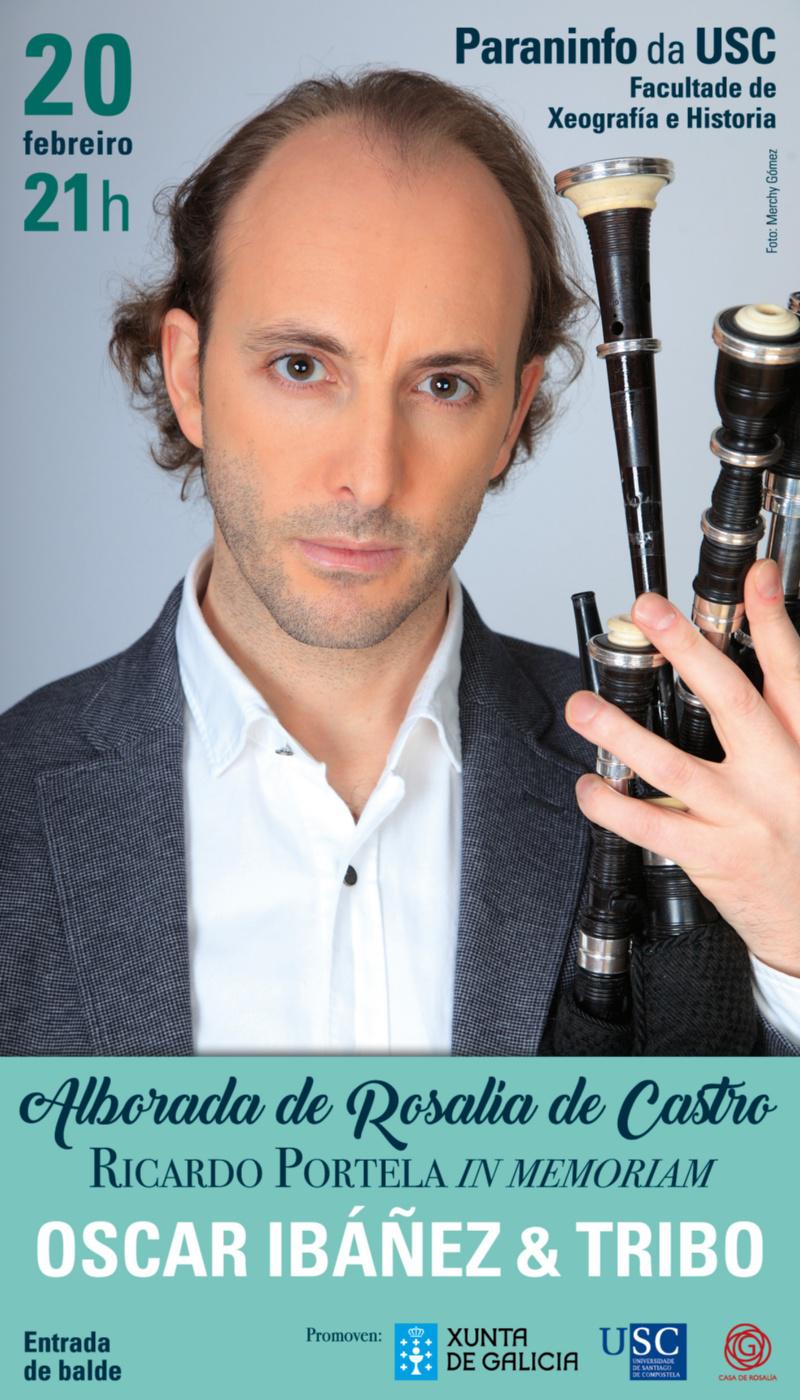 Inspirado no antedito e destacado acontecemento, Óscar Ibáñez reinterpretará a Ricardo Portela este martes 20 dende a súa faceta artística no mesmo espazo, o Paraninfo da USC, en lembranza da histórica actuación do Gaiteiro de Viascón, cunha selección do seu repertorio enriquecida con arranxos frescos e cos timbres do seu grupo de directo, Óscar Ibáñez & Trío (Fernando Fraga, acordeón; Ioana Pérez, violín; Carlos Calviño, guitarra; Andrés Vilán, percusión; e Oscar Ibáñez, gaita e frautas).