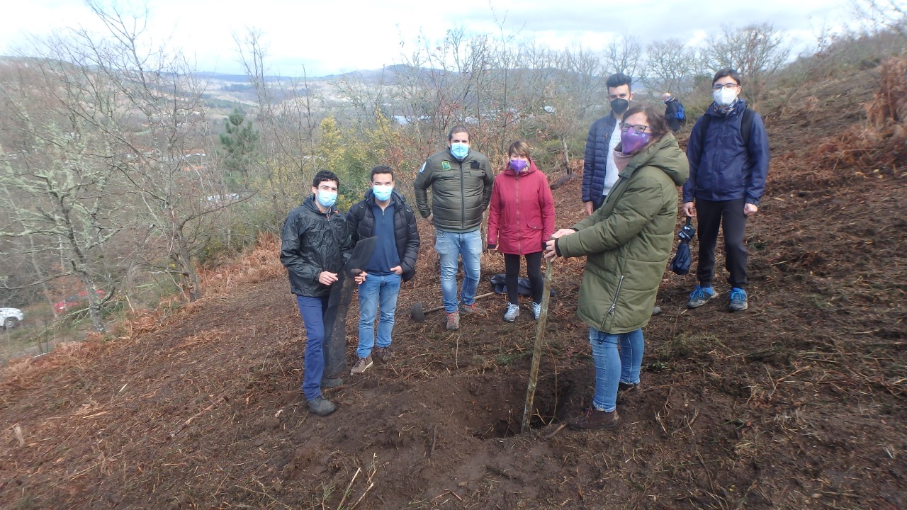 A expedición universitaria, que contou coa colaboración de persoal doutras entidades e empresas, plantou castiñeiros e carballos nun terreo incendiado no Concello de Muíños