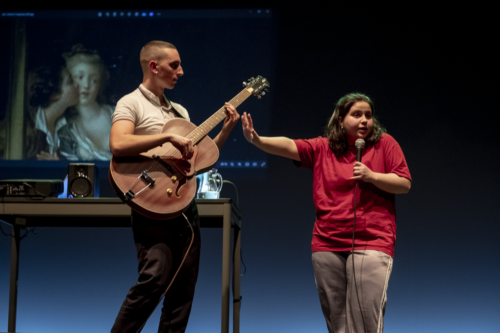 "Cal é a finalidade principal da boca? Comer, morder, falar? Non, bicar. A ausencia ou presenza dos bicos na nosa vida diaria determina o que pensamos, o que queremos, o que odiamos, a que lle temos medo e porque repetimos incansablemente as mesmas accións, como amasar a fariña ou ensaiar coa guitarra, por exemplo. Outros fan atletismo ou len", explican dende a Aula de Teatro da USC á hora de definir o eixo sobre o que se artella a obra.