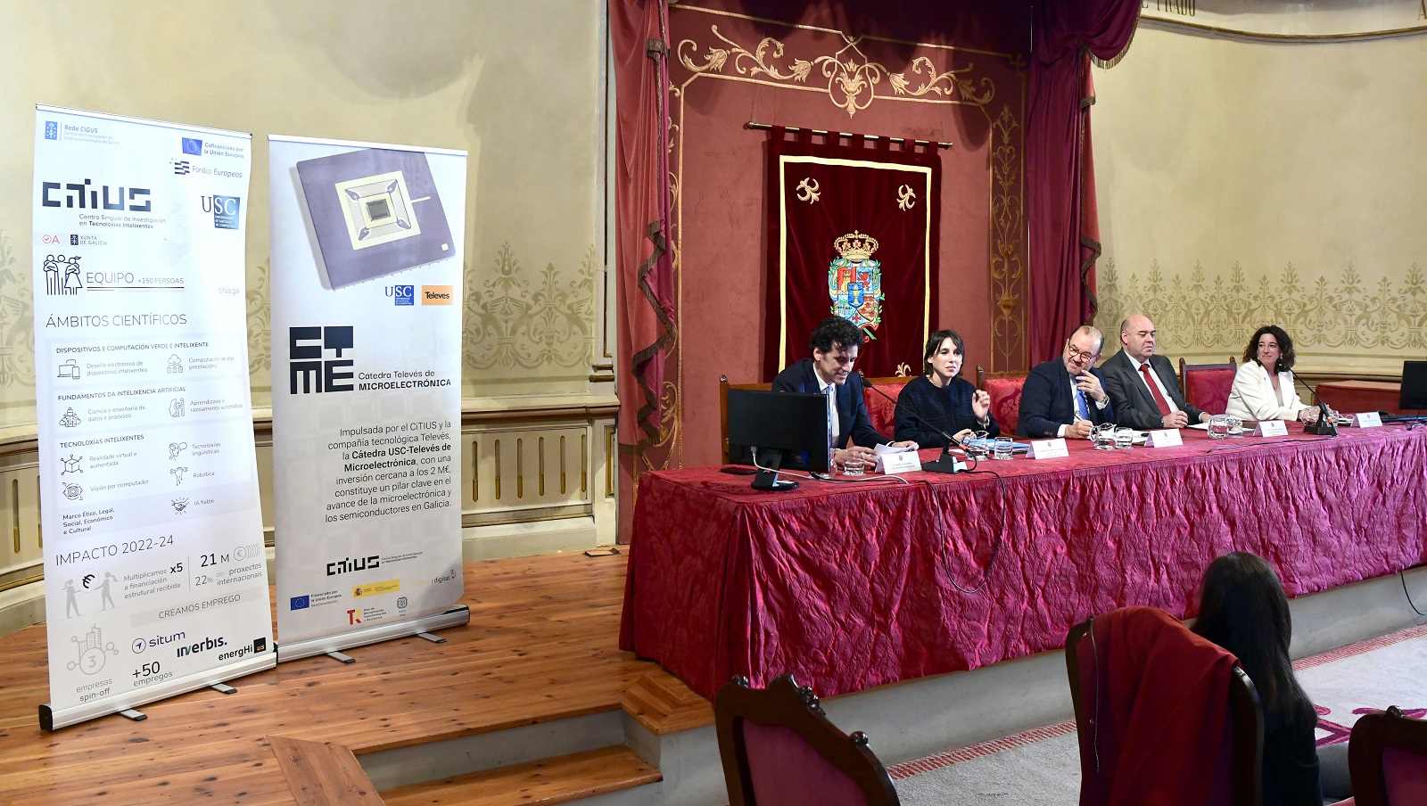 A Universidade de Santiago escenificou hoxe xunto á compañía tecnolóxica Televés o pulo definitivo á cátedra que xa traballa para situar Galicia na vangarda do chip europeo, un proxecto que aspira a transformar o futuro da microelectrónica desde a investigación, a industria e o talento, co CiTIUS á fronte da súa dirección científica