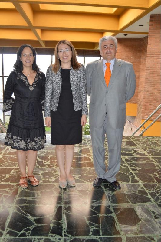 Damira Tattibayeva, entre Graciela Nebot e Carlos Franco, na Facultade de Veterinaria