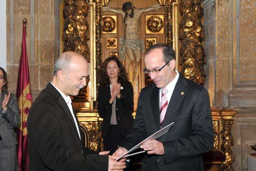 O profesor Urbano Fra (á esquerda) recibiu o premio premio de mans de Senén Barro